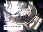 hi mate there should be 2 pipes that comr from oil pump the thicker one goes up to the oil tank and the thin one goes to the little nipple on the rubber inlet manifold hope this helps