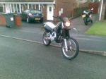 me neither but its growing on me lol + its just a pic i took earlyr an liked it so thought id upload, theres not much on it realy tanks in for repray and am ordering new panels from motofiled along with a monster energy graphics kit :) + i know they are rare but the back mudguard was white when i got it and previous owner had cut the panel down on the left handside cudnt get a hold of the plastics :( so got them sprayed but now geting new 1nz :)