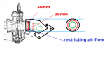 I heard another guy in norway having a 28mm carb and dep, And hes bike doesent do any more than 120 km/h either.