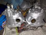 Any tips to remove the thermostat unit screws please? Stiff as hell and afraid i will knacker the heads on them. Want to replace them with my hex bolts like rest of bike. Besides that little pain. The engine has been reassembled. Genuine head gasket , new base gasket, powervalve ground down with plenty of clearance, ports cha mm fered and wet and dried a little more on ports for peace of mind, new powervalve seals, and head torqued down to rwquired level including barrel. Carb has been cleaned.exhaust and end can been cleaned and sprayed matt black with high temp bbq paint looks good. Plenty of compression with new plug in....need to buy new motor oil for gearbox, decent 2 stroke oil, new air filter,new fork seals as 1 is leaking, fit my headlamp and possibly get indicators??? Not sure yet bout them. Also considering purchasing new rear fender and yz style front fender too? May aswell ? Oh and seat getting refurb custom style by local company. Plenty to keep je busy over next few weeks when the weather should be warmer and brighter.