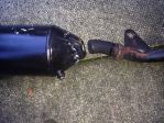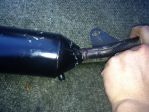 well exhaust was in state, after trying to source replacements -managed to get these cracks/holes/splits all welded up and fixed. need to give a good rub down with paper now and get em sprayed in black to finish the tidy up. Next mission is then to sort the rear indicator wires and ensure they are correct. WIll disable them for now and get mot down with indicators in place and switch removed- then i can have play and fit them back properly :p