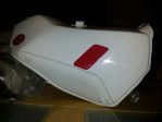 Re painted the tank for this tonight just the primer and White basecoat after finally tracking down a set of new tank decals they are from a Black/Green bike but I have the Red vinyl and can now copy them and finally get the old girl finished, I cant wait to see it with the tank seat and new panels fitted after all the time ive had it. Oh and I fitted some brand new rear brake hose clips and screws as the original were slightly damaged.