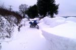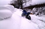 after tackling the blocked of road again i nearly got through to till i hit a wall of soft snow that seems go on forever .. ohh an come off again bit of an elbow killer too this one, thank god for trusty tools an extra clutch an brake levers in the back pack or id have had no clutch an been pushing my way back out of it all