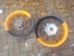 Big progres over the last 2 days. Got the wheels nearly done. Engine in. Most of wiring loom hooked up. Rear suspension on. And it works this time :) its finally starting to look good
