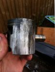 Note how the top piston ring is now ground into the piston no