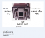 When I done it to mine I just copied them from the original h4 plug that the dt has as standard but I think from memory the left pin is earth.if you test wchich live is which using a multimeter u can find the earth that way.thats how I done it anyway.turn headlights on put negative wire to frame and then touch each of the 3 wires until one gives u a live reading.then do same with high beam switched on.this will give u the two lives and the one left is the earth.i had to turn my bulb upside down to get a better light output so the single pin at the bottom but to be honest light output is still not brilliant and unsure whether the beam patten is right for mot.