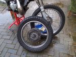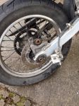Next on my list is SM'ing this thing. Picked up a yamaha xt125x wheel, for £35. I wasn't going to say no, and thankfully it all fits pretty good but I will need a spacer kit for it and a front brake caliper bracket. For now I am on the look out for some DTX or WRX wheels.