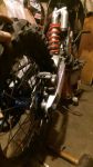Cool ,got the dtr exhaust manifold welded to the fmf so thats all done just got to spray the weld with some heat paint i also took a gamble and ordered some tzr 250 reedblock spacers and they fit perfect so i polished one up quick and im guna try it out on the weekend and seeing as the the bikes not going to be done for a few months im going to spray the rear shock because the paints starting to flake a bit and its the only thing letting it down (ocd).....ill put some more pics up of the progress on weekend