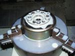 Nice setup sure it will be true enough, when wer doing precise jobs like that on the manual lathe we put a clock on a magnetic stand on the lathe bed, take the lathe out of gear, slowly rotate by hand with the clock touching the front face of whatever your truing, the clock will go up and down as you spin it, a little tap here little tap there, here there, here there, until the clock stays on the same reading for a full rotation then you know your **** on :) abit of a pain and probly not that neccasary. Which is why I tend to use the cnc miller for jazz like this. Norfe lightened a few with a grinder and didn't notice excessive vibes so I really don't think you would notice it being slightly out of scew turned by a lathe.