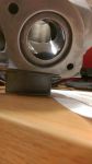 when out with my mate on hes rm and the bike had only done about an hour and i thrashed it a bit trying to keep up then the exhaust started blowing at the stub so i rode home left it for a couple weeks then went to fit a new exhaust and noticed the piston was scored up the exhaust port ...took it apart and noticed the head gasket was slightly leaking probably from being over torqued (my torque wrench is ****e) ,i was still in the process of test running it so hadnt quite worked out the kinks so maybe jetting was wrong well probably was anyway long story short the piston had nipped up on the exhaust port side theres a tiny bit of nickasil missing and the piston is no good but rings look ok (not going to use them ).....basicly im a numpty ha .......its going off for a replate at the end of the month and ordering a piston and little end bearing, just got to get this 3mm skimmed of the top of the barrel first. and then the first thing im going to do when its back together is some plug chops! lol