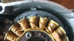 On some occasions the bike would run for about 5 seconds then die. It's keeps getting spark and then no spark at all. The only time there seems to be a spark is when the engine is turning over more slowly, due to the drain of the battery of lots of attempts of trying to get it to start.  I've gone through all the resistance testing for the generator and ht coil given in the manual and all checks out ok. I have continuity in all the circuits leading from the cdi to the generator and to the rectifier. So now I'm going to test the starter motor. But as I was removing the starter motor I noticed some damage to the flywheel and then found that there is some damage to the generator coils.  Could this be the cause of the problem? Has anybody had damage to their generator like this before?